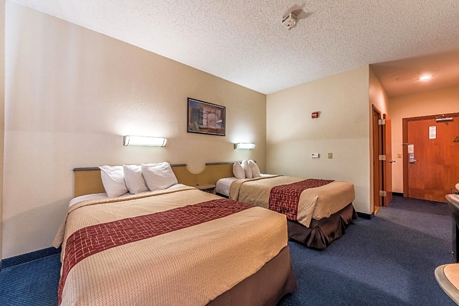The family room is furnished with a desk and a seating area. The unit has 2 beds.